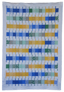 "The inspiration for this quilt came about when I saw a delivery person unloading his truck, searching for the right package. Boxes were scattered about the sidewalk -- I simply organized them into neat rows and colored the boxes red for this quilt!"